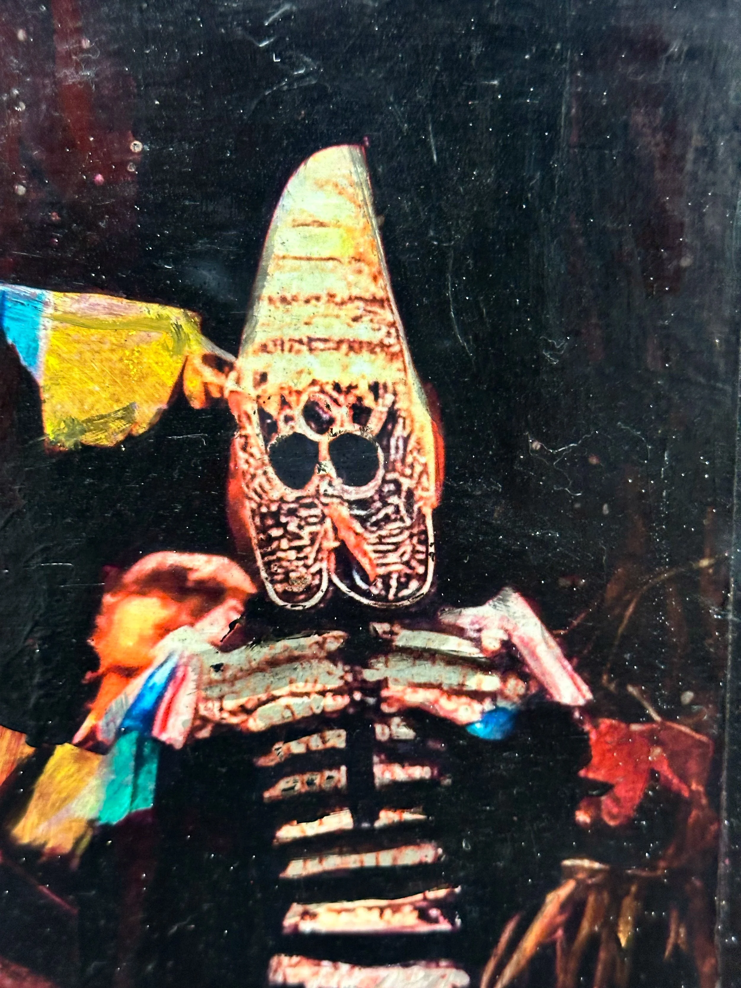 Time Travelers #6 4x5’, oil on photographic paper, wheat paste, wood. Detail